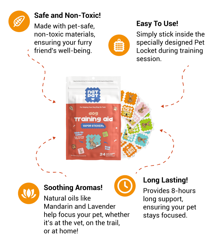 Solution: That’s where Training Stickers steps in! Our unique essential oil blend acts as a consistent scent cue that helps your dog understand that its it’s “training time.” Over time, your pup naturally associates the aroma with focusing on you rather than external distractions.