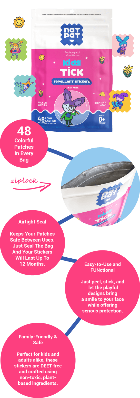 Try NatPat Tick Repellent Stickers Today.